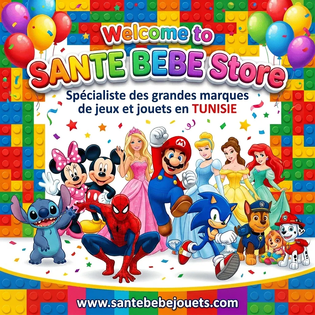 Notre site www.santebebejouets.com est spécialisé dans la vente en ligne de jeux et jouets de grandes marques telles que la marque Lego, Vtech, Smoby, Quercetti, Buki, Trefl, Clementoni, Headu, Barbie, Nebulous Stars, Ecoiffier, Ptit loup, Make it Real, Sassi Junior, Sentosphère, CraZart, Nathan, Llorens, Lexibook, Martinelia, Sophie la girafe, Béaba, Dolu, Top Model, WoW Generation, Chicco, Bontempi, Ravensburger, Must Team, Thermobaby, Infantino, Winfun, Bkids, Auzou, Asmodee, Spin Master, Djeco, Hasbro, MegaBleu, Science4you, Multiprint, Meccano, Fisher-price, Arias, Jesmar, Educa, Maped, Peg-perego, Playmobil, SES.