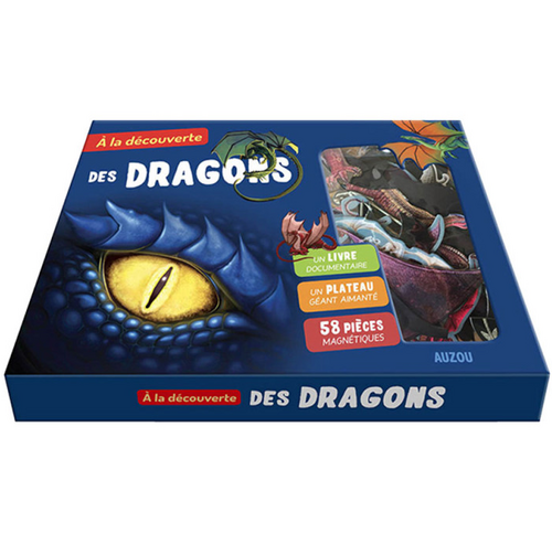 Jeu avec un plateau géant aimanté et 53 pièces magnétiques. Il manque le livre documentaire d’où le prix mini. Place les pièces magnétiques sur ton plateau aimanté représentant un véritable décor fantastique. Maintenant, à toi de jouer, de replacer et de reconstituer tes dragons ! Dimensions du plateau : 60x40cm