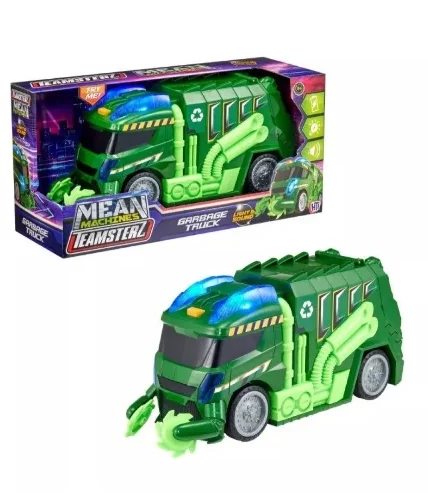 - Contribuez à la propreté des rues avec le camion-poubelle Teamsterz Mean Machines, illuminé et sonore. Appuyez sur le bouton pour activer les lumières bleues clignotantes, la musique, les bruits de moteur réalistes et les sons d’un vrai camion-poubelle. Son design futuriste et élégant comprend des roues indépendantes, des balais de voirie manuels et une trappe à ordures arrière à commande manuelle pour vos déchets recyclables. Idéal pour développer la motricité et les capacités cognitives de votre enfant, ce camion est parfait pour jouer à le pousser. Le camion-poubelle Teamsterz Mean Machines est le cadeau idéal pour tout petit conducteur enthousiaste, offrant des heures d’amusement et d’imagination. Fonctionne avec 3 piles AAA (incluses). À partir de 3 ans