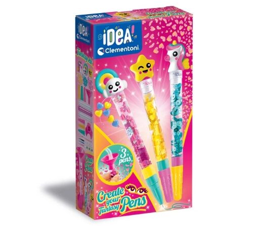 Un coffret créatif original qui permet d’assembler 3 stylos et de les personnaliser avec différentes décorations fantaisies.