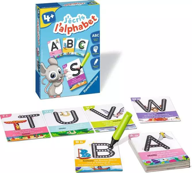 Tracer les lettres point par point grâce aux 26 cartes pochoirs qui permettent à l’enfant d’apprendre l’alphabet. Avec ces 26 cartes pochoirs, l’enfant trace les lettres point par point, mémorise leur forme avec les lettres déguisées et reconnaît les sons grâce aux comptines amusantes. Les jolies illustrations colorées qui accompagnent chaque lettre et la frise autocorrective des cartes pochoirs permettent à l’enfant de vérifier lui-même ses réponses.