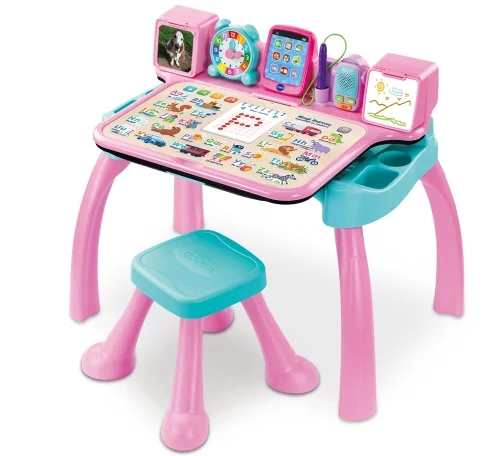 Le Magi Bureau interactif et musical transforme l’apprentissage en véritable terrain de jeu éducatif dès 3 ans. Ce bureau évolutif 6 en 1 combine fiches interactives, atelier d’écriture, chevalet, tableau noir, tablette et table musicale pour accompagner les enfants dans la découverte des lettres, des chiffres, des couleurs, des émotions… et même de la musique !