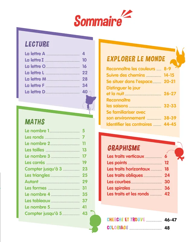Ce cahier propose des activités variées et ludiques conformes au programme de Petite Section de maternelle. Grâce à lui, l’enfant pourra consolider ses acquis en lecture, graphisme, maths et découverte du monde.