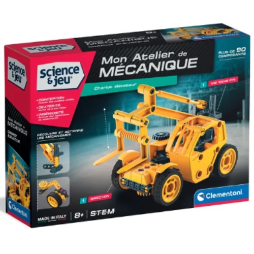 Un coffret de construction pour s’amuser à assembler un chariot élévateur avec son bras télescopique.