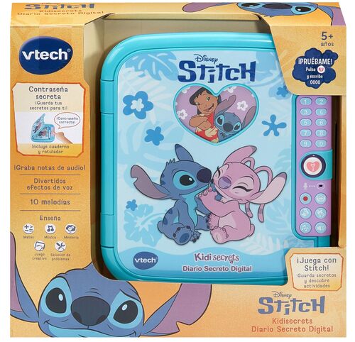 Ce journal intime électronique en forme de coffret s’ouvre uniquement grâce à un code secret personnalisé. À l’intérieur, un carnet Stitch de 60 pages permet de noter pensées, histoires ou souvenirs, en compagnie de Stitch, qui interagit avec sa vraie voix. Inclus dans ce journal intime : des jeux éducatifs et créatifs autour de la mémoire, des mathématiques et de la musique, pour enrichir l’expérience tout en s’amusant.