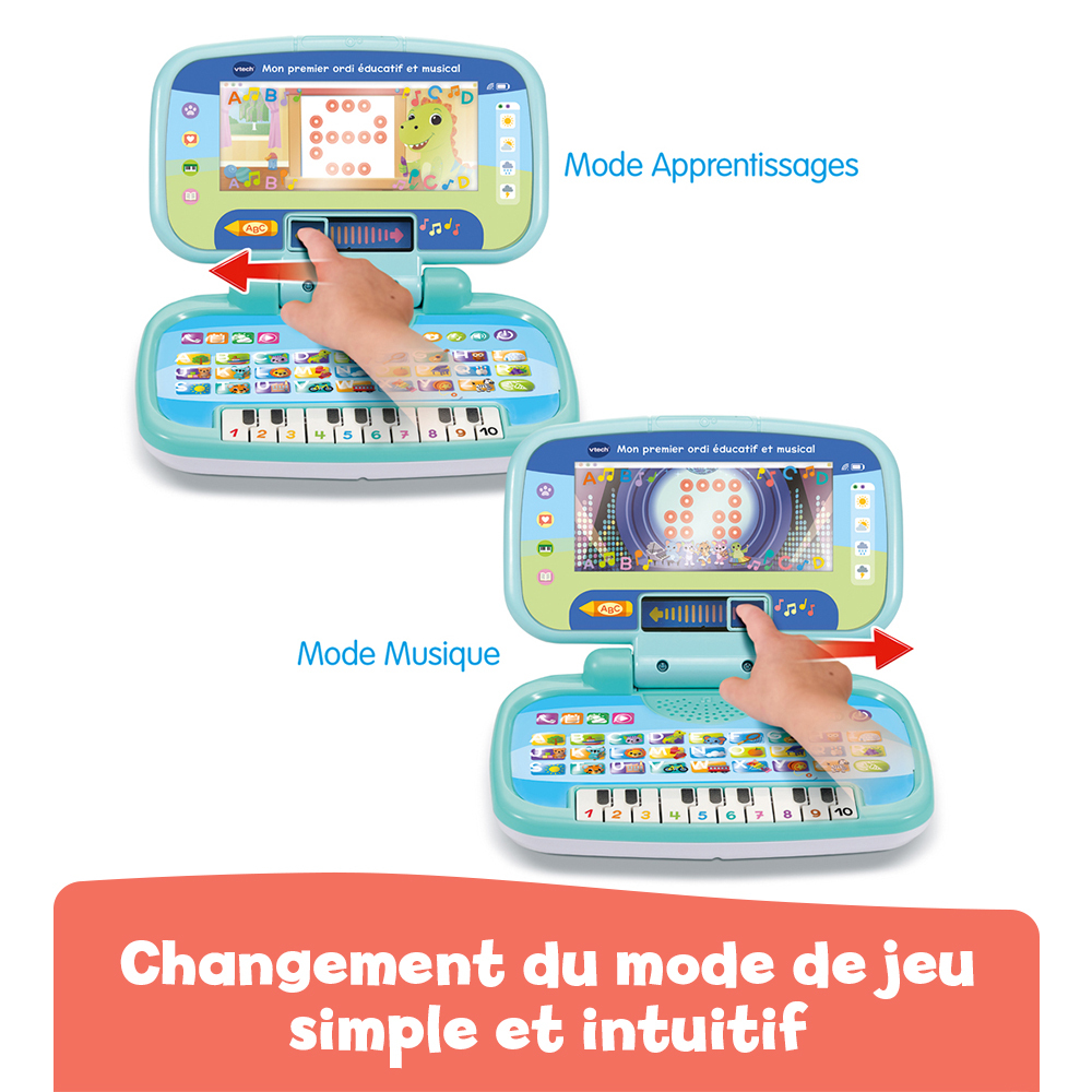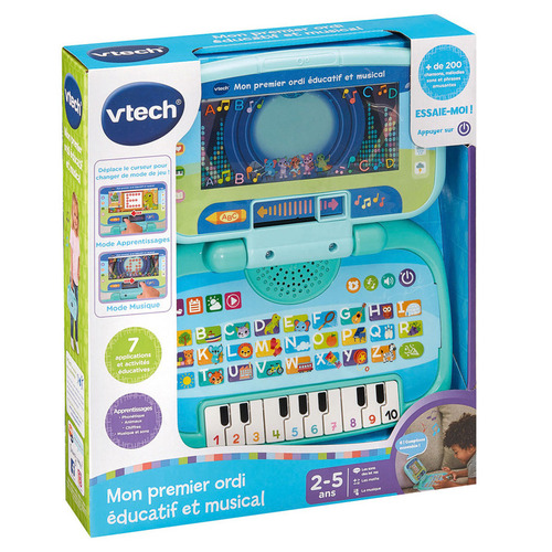 Mon premier ordi éducatif et musical est spécialement conçu pour les enfants dès 2 ans. Cet ordinateur interactif propose deux modes de jeu : un mode Apprentissages pour découvrir les lettres, les chiffres et la météo, et un mode Musique pour créer ses propres mélodies. Avec un contenu riche et varié, il offre 28 chansons et mélodies, des animations amusantes sur écran et des activités ludo-éducatives pour éveiller les jeunes esprits.