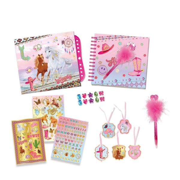 Un ensemble de cahiers sur le thème du cheval avec des autocollants décoratifs. L’ensemble comprend :
