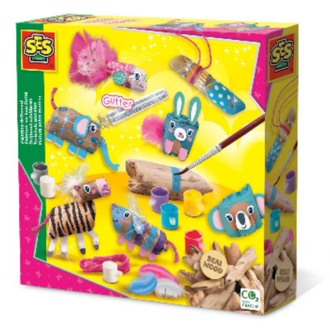 Ce sont des animaux très spéciaux, car ils sont faits de bois véritable ! Vous pouvez facilement les fabriquer vous-même en utilisant différents morceaux de bois flotté, six couleurs de peinture, des plumes, des paillettes et bien plus encore ! Recréez les animaux en suivant les étapes des instructions ou créez votre propre groupe d’animaux. Vous pouvez compléter les animaux à l’aide des visages imprimés et d’autres détails. Quel animal vas-tu faire ?