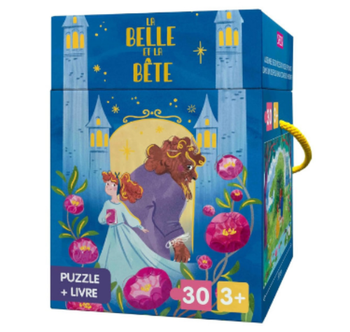 Entre dans le château de la Bête et vis avec la Belle une histoire émouvante où derrière un coeur de pierre se cache une grande bonté. Ce livre de 10 pages est un classique de la littérature jeunesse. Il est accompagné d’un puzzle de 30 pièces.