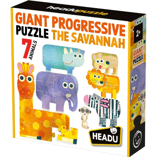 Sept grands puzzles progressifs des animaux de la Savane, a empiler du plus grand au plus petit.