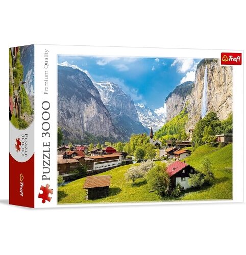 Ce puzzle de 3 000 pièces représente un panorama des montagnes suisses. Une fois assemblé, il forme une image de 116 x 85 cm. Fabriqué en Pologne à partir de matériaux écologiques, il est composé de papier calandré réfléchissant de haute qualité pour un assemblage facile. Dimensions de l’emballage : 26,5 x 39,5 x 9 cm.