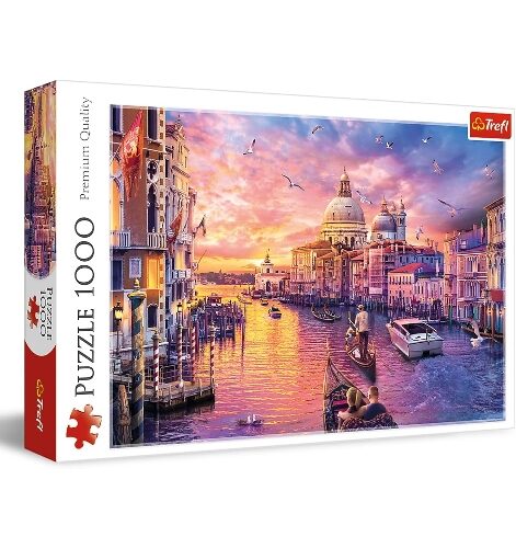 - Ce puzzle de 1000 pièces, idéal pour les amateurs de puzzles, permet de reconstituer une image de 683 x 480 mm représentant le Grand Canal de Venise au coucher du soleil.