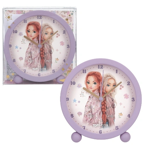 L’heure est venue d’adopter TOPModel : ce réveil au motif double mannequin adorable rend le réveil amusant. Son boîtier violet renferme une alarme, une lampe de poche et de petites billes en guise de pieds. Les aiguilles tournent silencieusement et une pile AA (1,5 V) est fournie.