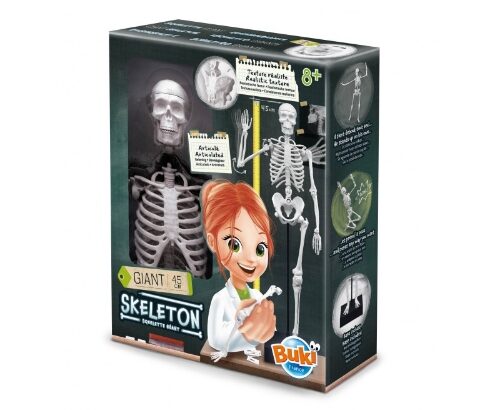 Les os ont une texture et des couleurs réalistes. Le squelette est entièrement articulé et l’enfant peut le placer dans différentes positions.